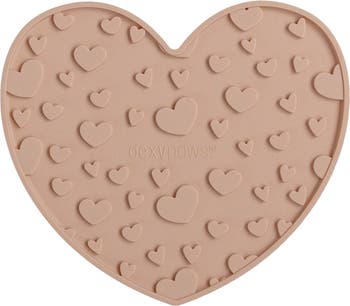 DEXYPAWS: BLUSH PINK HEART ENRICHMENT LICK MAT - Did you know that your dog s favorite wet or raw food can be spread onto the mat to replace its feeding dish? And did you know that using an enrichment lick mat is a great way to help your dog slow down during feeding time? Some of our classic lick mats are now available in fun new shades. These lick mats can be used just like our other ones - as a food bowl replacement to slow down those fast eaters or as a stress reliever during bath times or when they’re feeling anxious.The suction cups on the back keep the mat in place. EASY TO USE: All you need is a little peanut butter, raw food, or plain yogurt! Smear it on the lick mat and watch the magic unfold - your pet is going to be captivated and soothed by the textured grooves as they work their way through the lick mat. It s also easy to clean, it can go in the dishwasher, and is made out of 100% food-grade and BPA-free silicone, ensuring your pup is safe whilst enjoying themselves! Material: Food-grade 100% silicone BPA free.