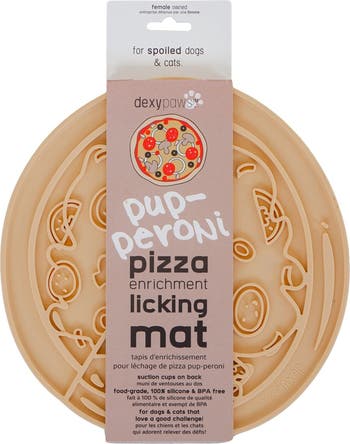 DEXYPAWS: PUP-PERONI PIZZA ENRICHMENT LICK MAT - Did you know that your dog s favorite wet or raw food can be spread onto the mat to replace its feeding dish? And did you know that using an enrichment lick mat is a great way to help your dog slow down during feeding time? Keep your furry friend busy all day long with our limited edition lick mats. We ve taken some of our bestselling items and added some fun shapes and a pop of color! These lick mats are great for stressful moments like bath time or when your pet is feeling anxious. The suction cups on the back keep the mat in place. EASY TO USE: All you need is a little peanut butter, raw food, or plain yogurt! Smear it on the lick mat and watch the magic unfold - your pet is going to be captivated and soothed by the textured grooves as they work their way through the lick mat. It s also easy to clean, it can go in the dishwasher, and is made out of 100% food-grade and BPA-free silicone, ensuring your pup is safe whilst enjoying themselves! Material: Food-grade 100% silicone BPA free.