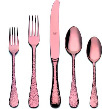 Mepra Epoque Flatware will add an air of sophistication to your flatware. This flatware is made of 18/10 stainless steel, which ensures that it is durable. The Hammered Pattern is a reproduction of a hand-made fork hammered by an artisan from the mountains in northern Italy. This Epoque Flatware has an ergonomic handle that is very comfortable to hold. Our flatware is completely dishwasher-safe and resistant to rust, corrosion, fading, tarnishing, and chipping.