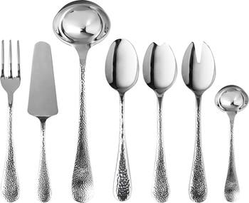 Mepra Epoque Flatware will add an air of sophistication to your flatware. This flatware is made of 18/10 stainless steel, which ensures that it is durable. The Hammered Pattern is a reproduction of a hand-made fork hammered by an artisan from the mountains in northern Italy. This Epoque Flatware has an ergonomic handle that is very comfortable to hold. Our flatware is completely dishwasher-safe and resistant to rust, corrosion, fading, tarnishing, and chipping.