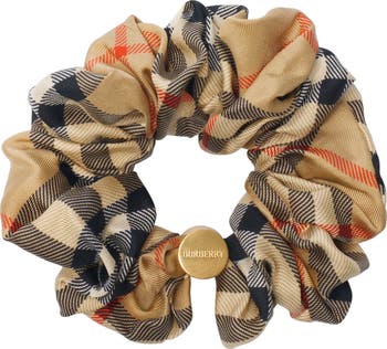 Iconic checks and an engraved Equestrian Knight Design medallion lend heritage character to this Italian-silk twill scrunchie, which glides smoothly over strands to minimize tugging, creasing and breakage.