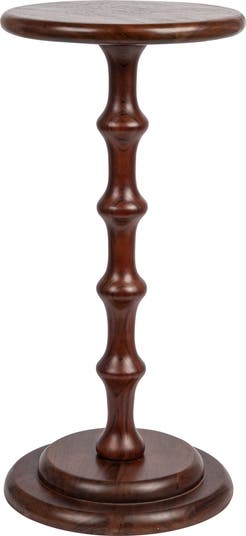 - This round solid wood pedestal end table features a thick rounded edge top and a heavy solid wood base; It is ideal for use next to an accent chair in a living room, bedroom, or anywhere you may need to rest a martini