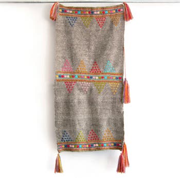 Our festive Erika Throws are meticulously handcrafted in Chiapas, Mexico, using wool from locally raised sheep. Each piece is woven on a traditional loom and adorned with vibrant hand embroidery, adding a lively touch of color. Perfect as a cozy accent throw or draped beautifully at the foot of a bed, the Erika Throw brings warmth and charm to any space. Please note that the dimensions do not include the tassels at the corners. Due to their handmade nature, dimensions will vary slightly.
