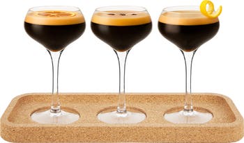 Discover the perfect way to serve espresso martini tastings and cocktail flights with this 4 Piece Set. Featuring three 4.75 oz (140 ml) coupe glasses made from titanium-reinforced, lead-free crystal, each glass is designed with a shallow V-shaped bowl that retains crema and enhances coffee aromas. The included cork tray is handcrafted from natural Portuguese cork and features recessed slots to keep the glasses securely in place while serving. Lightweight, elegant, and thoughtfully designed—this set is ideal for tasting experiences or cocktail pairings.