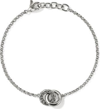 A pair of bold links bring contrast to this handcrafted bracelet with polished and chain-carved finishes.