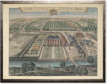 This vintage-inspired print, framed in a silver wooden frame, features a vintage, painted estate plan. Sized at 24 inches by 18 inches, this made in the USA frame makes for a beautiful addition to any wall.