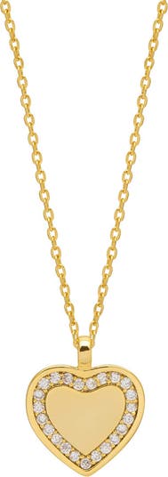 This golden necklace brings lovely shine to your stack with a heart pendant bordered by a halo of cubic zirconia.
