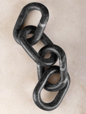 The Eternity Marble Chain Links transform the beauty of natural stone into a sculptural statement. Hand-carved from premium marble, each oversized link is polished to reveal the stone’s distinctive veining and depth of tone. The interlocking form captures both strength and fluidity, offering a balance of geometry and movement. With subtle variations in color and texture, no two pieces are exactly alike—each link bearing the hallmark of handcrafted artistry and the enduring allure of natural material. Designed to command attention, Eternity represents both timeless form and modern elegance. Styled on a coffee table, console, or bookshelf, the Eternity Marble Chain Links add a striking focal point to any setting. Their weight and presence ground a space, while the polished finish interacts beautifully with light and shadow. Whether displayed alone as a bold sculpture or layered into a vignette with books and trays, Eternity brings quiet luxury to interiors. More than a decorative object, it is an heirloom-quality accent that reflects artistry, refinement, and the natural beauty of stone.