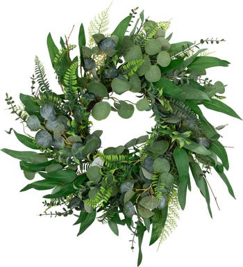 Eucalyptus and Fern Mixed Foliage Artificial Spring Wreath - 24"
