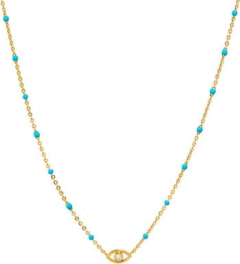 Add a playful touch to your stack with the Evil Eye Turquoise Beaded Necklace by Adina Eden. Crafted to bring shimmer and personality to any look. A sleek silhouette meets standout sparkle. Jewelry that goes wherever life takes you.