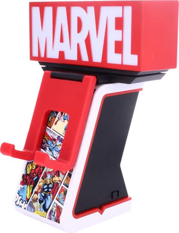 Excelsior True Believers!! Crafted in white and featuring an illuminated version of the iconic Marvel Red Brick Logo set atop a light up edged column, the MARVEL LOGO Ikon Electronic Device Holder and Charger brings the symbol of some of the most beloved comic book characters to your room decor while also holding anything from your gaming controller, your phone, or anything else you need held in its patented R.E.S.T. system. The MARVEL LOGO Ikon is perfect for the PS5 or Xbox/X controllers, contains two USB fast charging ports, and ships with a 4 USB-C charging cable right in the box! Want to personalize it even more? Bring an extra edge to your Ikon by connecting our SP2 Powerstand headphone rest into the back, adding yet another holding element to your display. Controllers and phones NOT included.