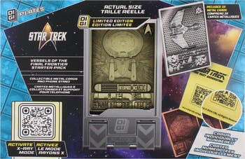 DIGIPLATE STARTER PACK: STAR TREK - Introducing Star Trek Digiplates, the world’s first functional metal cards. Embark on a stellar adventure with our Star Trek collection featuring fan-favorite elements like the Borg Cube, Klingon Empire, and Enterprise NCC-1701! Each package includes three interchangeable licensed Digiplates and a Digistand for display and holding your phone. Watch as these Digiplates come to life with augmented reality, immersing you in the world of Star Trek like never before. Get ready to boldly go where no fan has gone before! EACH STARTER PACK INCLUDES a Digistand and three interchangeable licensed plates, meticulously etched with intricate artwork from top gaming and pop culture brands. These collectible plates are not only visually stunning but also unlock digital collectibles, accessible through the Digiplate WebApp which can be accessed via the back of each plate. The digital collectibles vary in rarity and are released via gameplay at key times throughout the year, extending the product s lifespan. When scanned, the plates come to life through AR-enabled digital collections, and other exciting rewards. Digiplates seamlessly blend the physical and digital worlds, creating an immersive experience. Start your collection today.