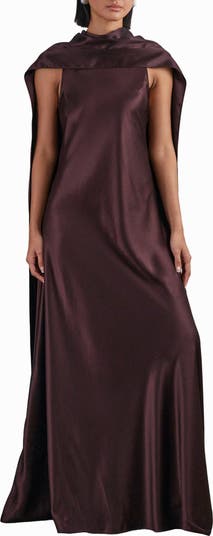 A drapey scarf creates graceful movement on this figure-skimming maxi cut from glossy satin.