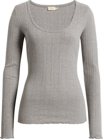 Pretty pointelle texture adds a bit of vintage-inspired romance to this soft organic-cotton-blend T-shirt that s a low-profile first layer or a flirty solo player.