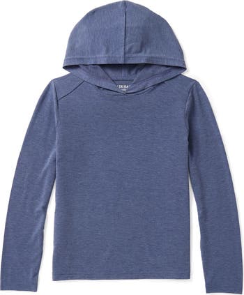 Stretchy, sweat-wicking fabric brings all-activity comfort to a hoodie made with recycled fibers and added UV protection to extend your child s time in the sun.
