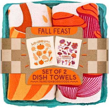 Brighten your kitchen with our Fall Feast Towel Set, featuring two of our signature 100% cotton dish towels: Hello Gourd-geous and Funging Awesome Mushrooms. Bundled in a gift-ready, biodegradable produce container and topped with our sleek NEW branded belly band, this set is as cute as it is practical. Made from all natural, unbleached cotton and screen-printed with eco-friendly inks, these towels are soft, absorbent, machine washable, and gentle on the planet. They’ll add personality to any kitchen and bring you a smile. Perfect for holiday gifting, birthdays, housewarmings, and more! They also make adorable (and sustainable) gift wrap too.