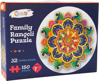 The 150-piece Family Rangoli Diwali Puzzle by Kulture Khazana is HUGE at 32 inches across. The puzzle design reflects traditional Indian floor art – Rangoli. Rangoli’s are used as decorations for holidays, festivals, and special occasions. Learn about Indian and South Asian art forms and use the puzzle as decoration for special occasions. A fun Montessori activity. A great way for families to celebrate Holi, Diwali, Navratri and other South Asian holidays. Learn about South Asian culture while experiencing the benefits of mindfulness, focus, stress relief and creativity.