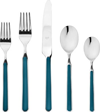 The Fantasia Collection from Mepra is the perfect combination of color and sophistication. Elevate your dining experience with our Italian-crafted flatware, skillfully made from top-tier 18/10 stainless steel and resilient Nylon-Fiberglass resin. Timeless in design, these pieces feature a colorful and elegant form. With a seamless construction, the Stainless Steel body extends to the handle s end, ensuring durability. The knives are enhanced with double serration for enduring sharpness and the entire set is dishwasher safe and backed by a lifetime warranty on the handle. Discover a perfect balance of aesthetics and functionality that s not only long-lasting but also food-safe and stylish.