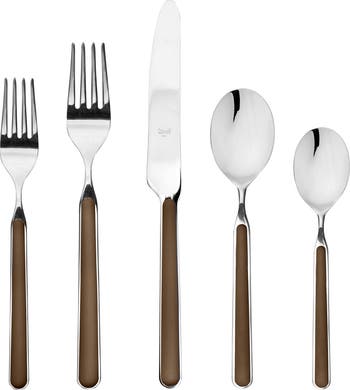 The Fantasia Collection from Mepra is the perfect combination of color and sophistication. Elevate your dining experience with our Italian-crafted flatware, skillfully made from top-tier 18/10 stainless steel and resilient Nylon-Fiberglass resin. Timeless in design, these pieces feature a colorful and elegant form. With a seamless construction, the Stainless Steel body extends to the handle s end, ensuring durability. The knives are enhanced with double serration for enduring sharpness and the entire set is dishwasher safe and backed by a lifetime warranty on the handle. Discover a perfect balance of aesthetics and functionality that s not only long-lasting but also food-safe and stylish.
