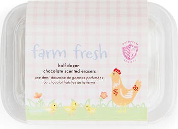 Clean up your mistakes with this Farm Fresh Eraser Set. Includes six mini egg-shaped erasers with a chocolate scent. Perfect for correcting mistakes and adding a sweet aroma to your workspace. Packaged in an adorable mini egg carton, each egg opens up and fits on a pencil! This set is a egg-celent addition to Easter baskets, party favors, or seasonal gifts.