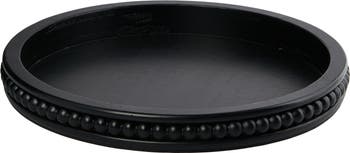 Farmhouse Decorative Round Wood Tray with Hobnail Edge, Black