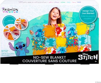 FASHION ANGELS DISNEY’S STITCH NO-SEW BLANKET KIT - Bring home the mischievous charm of Experiment 626—better known as Stitch! No sewing needed! Get ready for cozy, creative fun with this no-sew Disney Stitch fleece blanket kit! Using the easy “just tuck and tie” method, kids can assemble their own fringed-edge blanket. Featuring Stitch in vibrant, tropical patterns, this soft 48 x 48-inch blanket is perfect for snuggling up on the couch or bed. This kit is more than just play—it’s an opportunity to learn a lifelong skill in crafting and DIY! Young makers will build confidence as they master the tying technique and create something they can use and be proud of. A great gift for Disney fans and young crafters, it’s ideal for birthdays, holidays, or any special occasion. Looking for a way to keep kids engaged without screens? The Disney’s Stitch No-Sew Blanket Kit by Fashion Angels is the perfect unplugged activity! Kids can dive into a totally tactile experience as they build their own cozy blanket. The kit includes 25 fleece squares in fun Hawaiian Stitch themes and is designed for kids ages 6 and up—making it the perfect DIY activity for creative play. INCLUDES: 8 Solid Panels, 17 Printed Panels, Instructions.