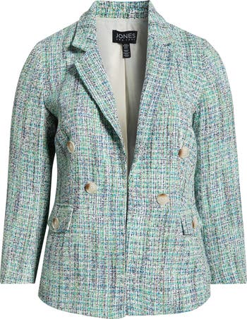 Finish a workday look or elevate a weekend one in an open front jacket textured in a springy tweed.