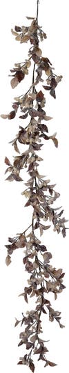 - A beautiful faux garland featuring realistic berries, a snow finish, and a delightful brown and cream color scheme