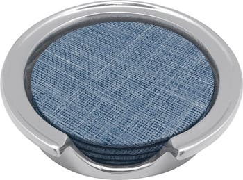 Celebrate and elevate your cocktail service with coasters featuring a richly textured weave and housed in a polished aluminum caddy.