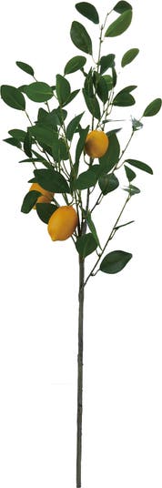Add a touch of natural charm to any space with this Faux Lemon Tree Branch. Crafted from PE, metal wire, and glue, this artificial plant features green leaves that bring a vibrant, lifelike appearance. Ideal for farmhouse, garden, or French country decor styles, it requires minimal maintenance and can be easily spot cleaned with a damp cloth. It measures 37.75 inches in height, making it the perfect size to add a pop of color to any room without overwhelming the space. The realistic design of this Faux Lemon Tree Branch will fool even the most discerning eye into thinking it is a real plant.