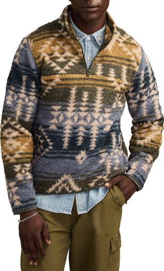 Geometric patterns and gradient stripes amplify the outdoorsy appeal of this soft and comfortable faux-shearling jacket.