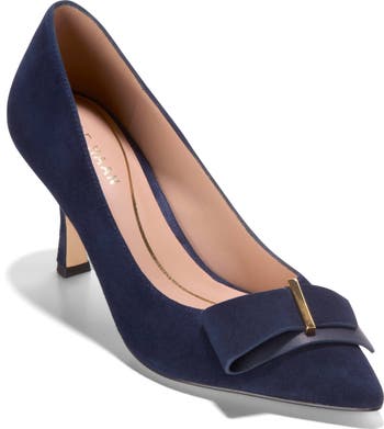 An asymmetric adorns the pointy toe on a streamlined pump set on a tapered heel and featuring Grand Lux Technology for plush layers of responsive cushioning.
