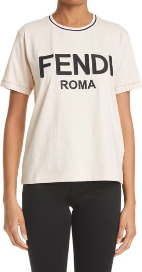 Roma logo embroidery reps Fendi on a cotton jersey tee fashioned with a striped collar and contrast topstitching along the sleeves.