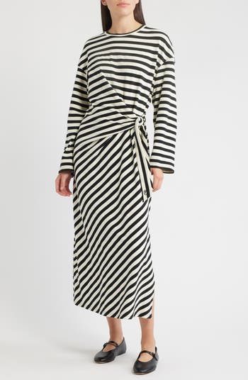 All the stripes lead to a good place with this cotton-enriched dress shaped with a side knot and eased with a slit.