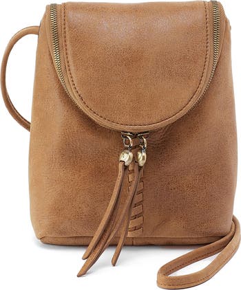 Decorative whipstitching and brushed hardware highlight the richly grained leather of a compact crossbody bag fitted with ample pockets for storing your smaller essentials while on the go.