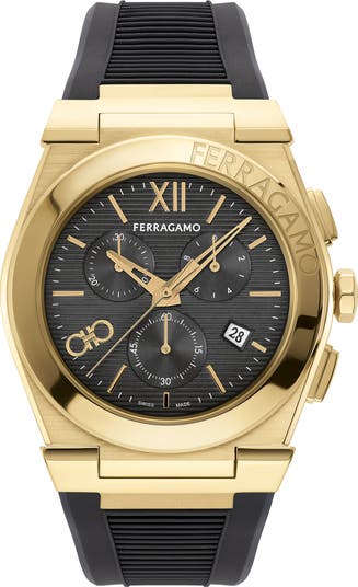 A trio of sunray subdials brings precision and functionality to a silicone strap watch designed with a date window and eye-catching details.