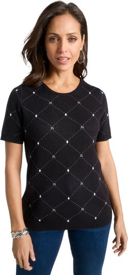 - A versatile classic short sleeve sweater with mini rib trim at sleeves and neckline. Pair with the Fine Gauge Cardigan for the perfect complement. Search Jessica London Fine Gauge Cardigan or B0CHMJ4J61 to find on Amazon.