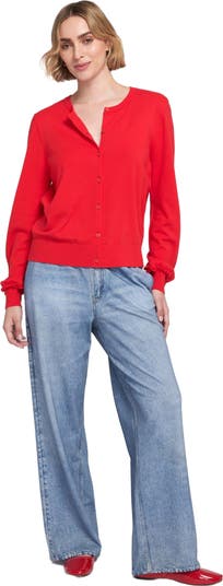Fine gauge knit offers a breathable, smooth finish with an elevated, polished feel. Lightweight and easy to layer, ideal for year-round, versatile wardrobe styling. Clean button-front closure for a tailored silhouette with subtle detail at the neckline. Soft blended yarn with a silky touch—55% viscose, 27% polyester, 18% nylon. Gently gathered cuffs add a refined, feminine edge without being too fussy. Designed to drape naturally over the body without clinging or bulk.