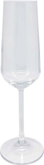 Strike that fine line of dinner-party excellence with this stunning set of champagne flutes artisanally crafted from lightly tinted glass traced with white along the rim.