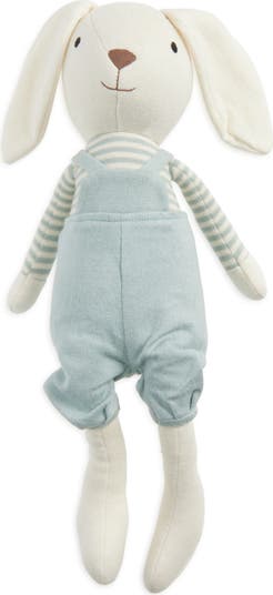 Playful floppy ears and supersoft blue overalls give this organic-cotton bunny a friendly look that makes it perfectly giftable and irresistibly huggable.