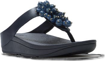 A cluster of beadwork gives these comfortable sandals an evening-ready twist.