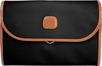 Tri-fold toiletry bag from Bric s Firenze collection, made in soft, embossed synthetic material. The iconic and elegant design is completed by the fine, vegetable tanned, Tuscan leather finishes. This overnight case ensures that all your toiletries will stay in order within an ample and organised space. EXTERIOR: two magnetic button closures; fine Tuscan leather finishes. INTERIOR: it comes with three zipped pockets and two transparent compartments; thanks to the convenient hook detail, you can also use it in an upright position.