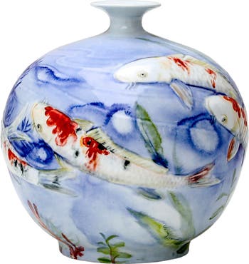 This elegant decorative pot features a stunning, hand-painted koi fish motif that brings tranquility and charm to any space. Made from premium-quality porcelain, this one-of-a-kind piece is designed to evoke the peacefulness of a koi pond, with intricate detailing on the fish and surrounding aquatic plants.