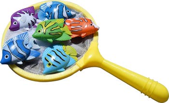 "Catching" fish in the pool was never so much fun! Bright fish graphics and deep net make this a great pool game choice. This set includes 1 net with handle and 6 brightly colorful fish. Suitable for ages 4 years and up. WARNING: CHOKING HAZARD -- Small parts. Not for children under 3 yrs. Only to be used in water in which the child is within its depth and under adult supervision.