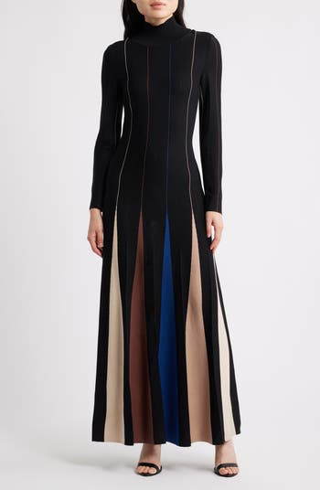 Colorblocked pleats open to fullness at the skirt of this fit-and-flare dress for a look that s both sculpted and flowy.