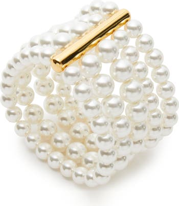 Bring a rich glow to your wrist stack with this five-strand bracelet strung with luminous faux pearls.