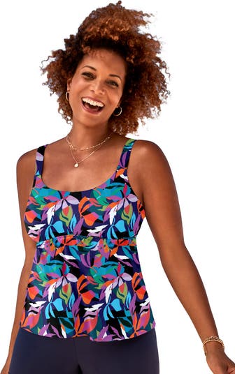 With its A-line silhouette, empire waist and shirring detail, this Flared Tankini Top is designed for pure figure flattery. Choose your favorite color or print, and pair this scoopneck tankini top with any of our swim bottoms for a suit that’s Designed to fit you like nothing else.