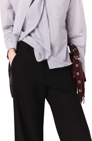 Inspired by the metropolitan world, this season Maje reinvents timeless pieces from women s wardrobes with a touch of audacity. Ideal for all occasions, these flared trousers combine comfort and elegance to give your outfits a new twist. They have a crochet zip fastening, two front pockets and two welt pockets on the back. Slightly flared at the ankles, slip a belt through the belt loops for a fitted silhouette that s full of style. Mix and match them with a striped top, platform boots and jewellery for a chic yet casual look.
