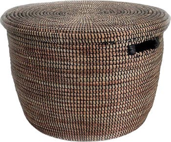 This minimalist White Basket with a flat lid adds a touch of handmade global decor to any room. A perfect storage container, it has both practical functionality and a minimalist, contemporary look that would look at home practically in any space. Use it as a hamper for towels in the bathroom, to store throw pillows in the living room or bedroom, or even in your entryway for scarves, etc - its uses are endless! It also looks great with the other sizw white basket as a focal point in any room. Wolof women in rural Senegal weave these baskets from millet grass, and black plastic threads which add strength and durability.