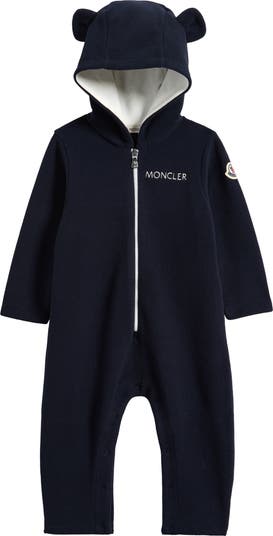 The mountaineering label brings a softer staple to baby s wardrobe with this comfy-cozy fleece romper topped with an ear-appliquéd hood for teddy bear–inspired cuteness. A cockerel logo patch and logo embroidery offer signature details.